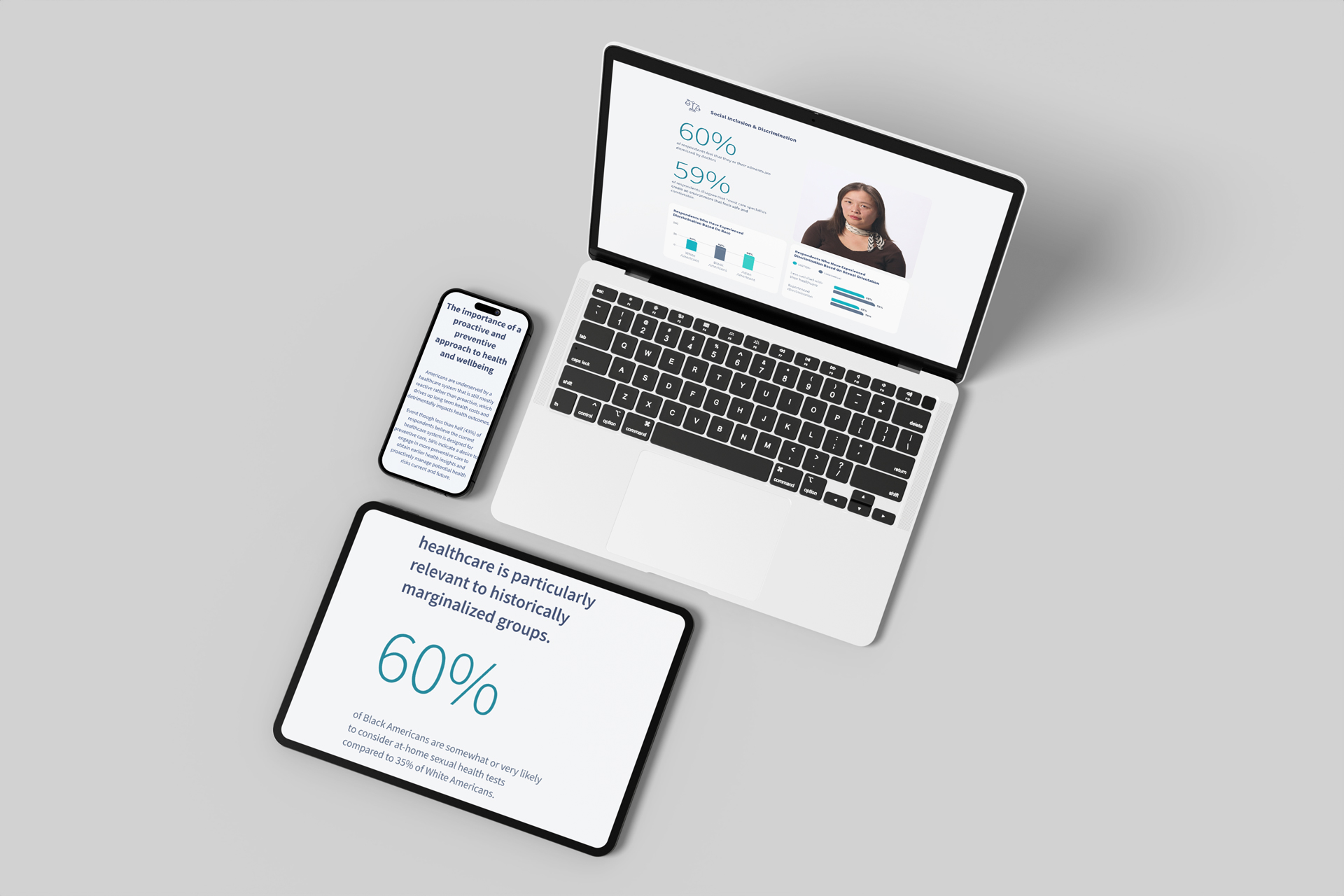 Our collaboration combined expertise in healthcare, design, and digital strategy to deliver a visually engaging and informative report. By leveraging Let’s Get Checked’s commitment to democratizing healthcare, we aimed to raise awareness and drive positive change in addressing health inequities.